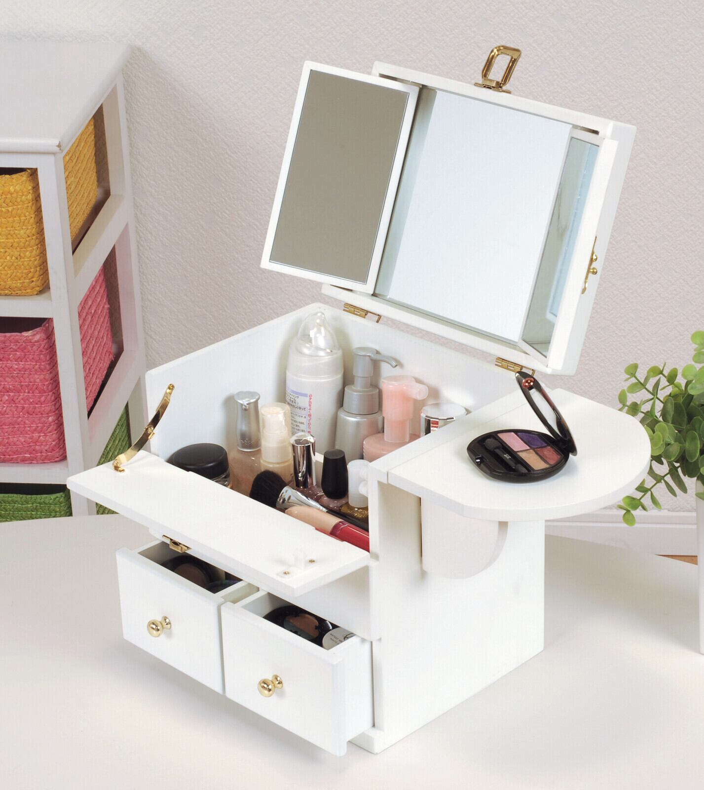 使い勝手のよい三面鏡タイプ。折りたためるテーブル付き。