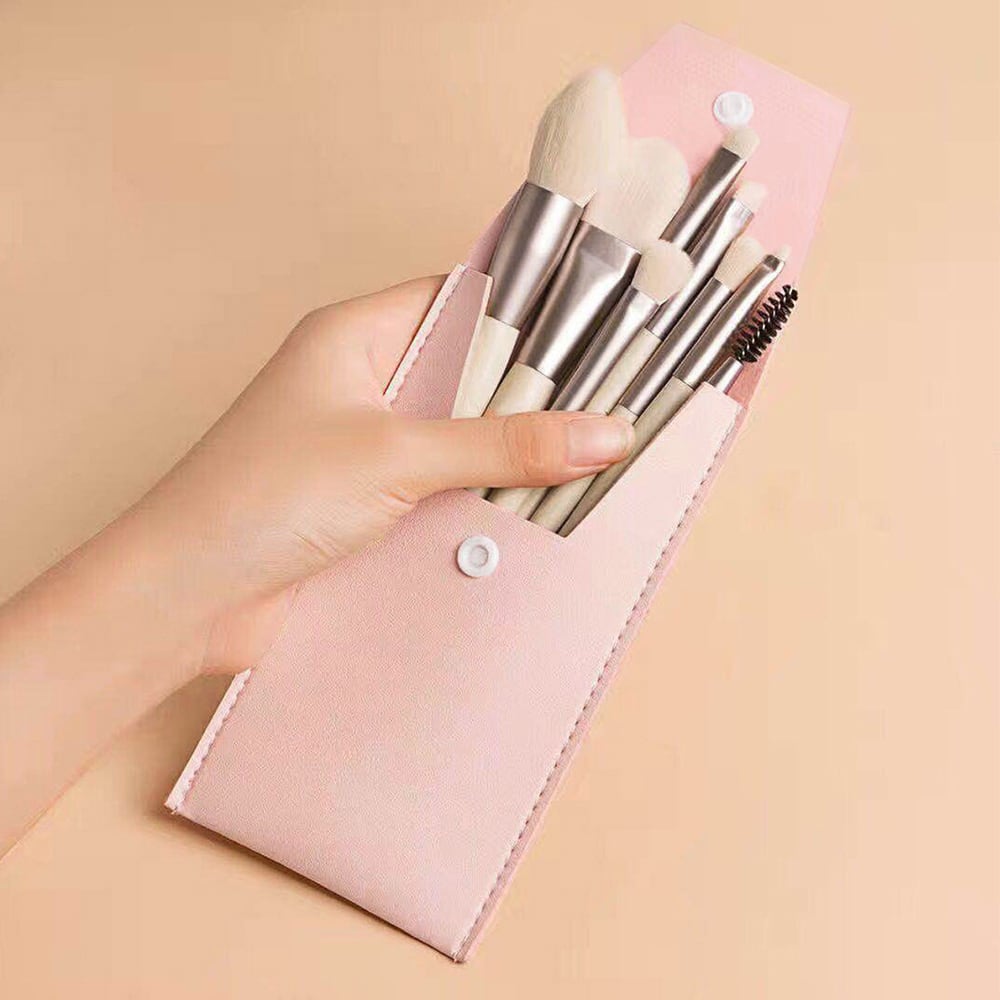 携帯に便利なPUレザーケース付きのメイクブラシ8種セット