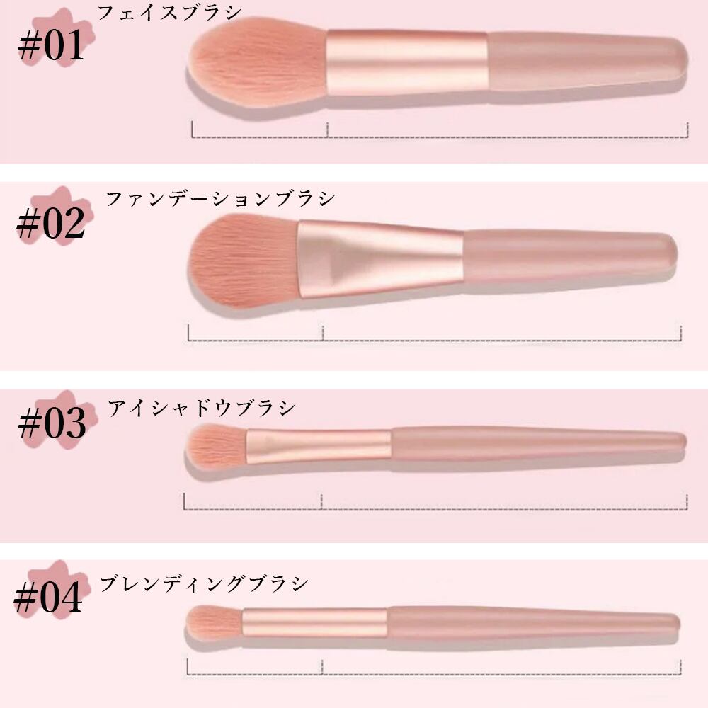 ファンデーションブラシ、チークブラシ、アイシャドウブラシなどメイクに必要なアイテムをそろえた8本セット