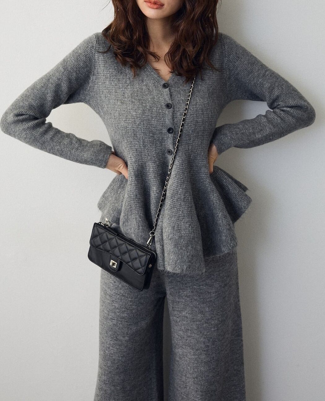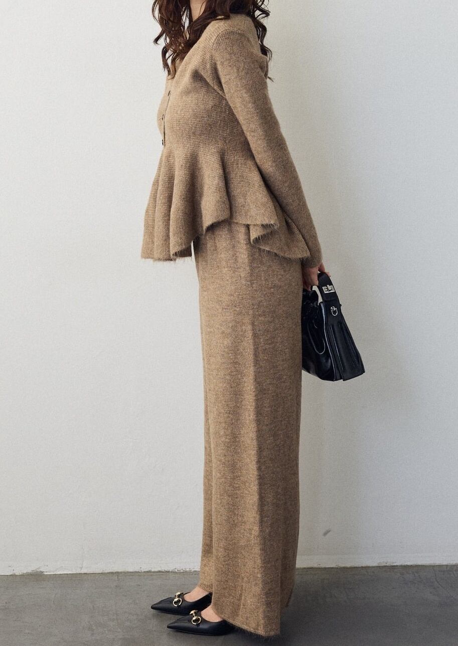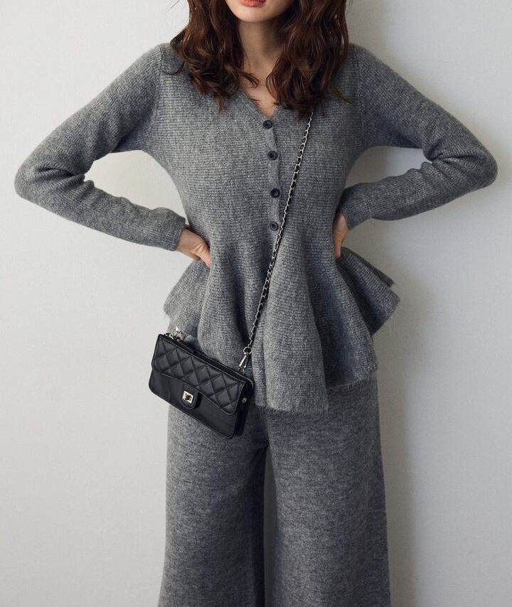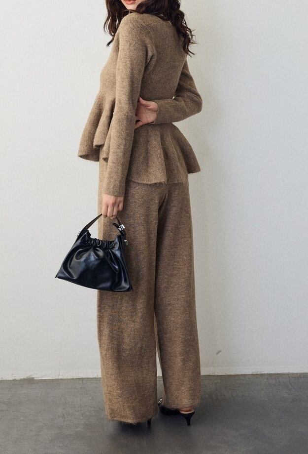 【サイズ】フリーサイズ:ニットセットアップ トップス:着丈57-61cm 肩幅30-33cm バス卜40-42cm 袖丈57-59cmパンツ:着丈94-99cm ウ工ス卜30-31cm 裾幅30-32cm