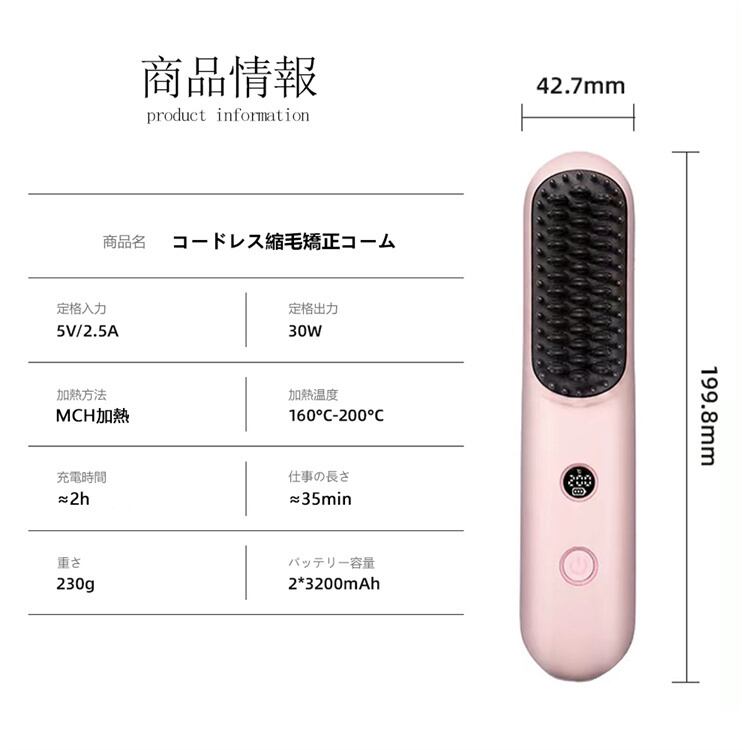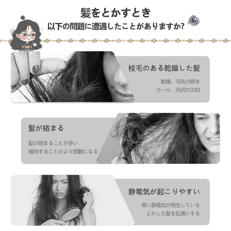 櫛 携帯櫛 かわいい 軽い テール櫛 ワイヤレスストレート櫛 マイナスイオン