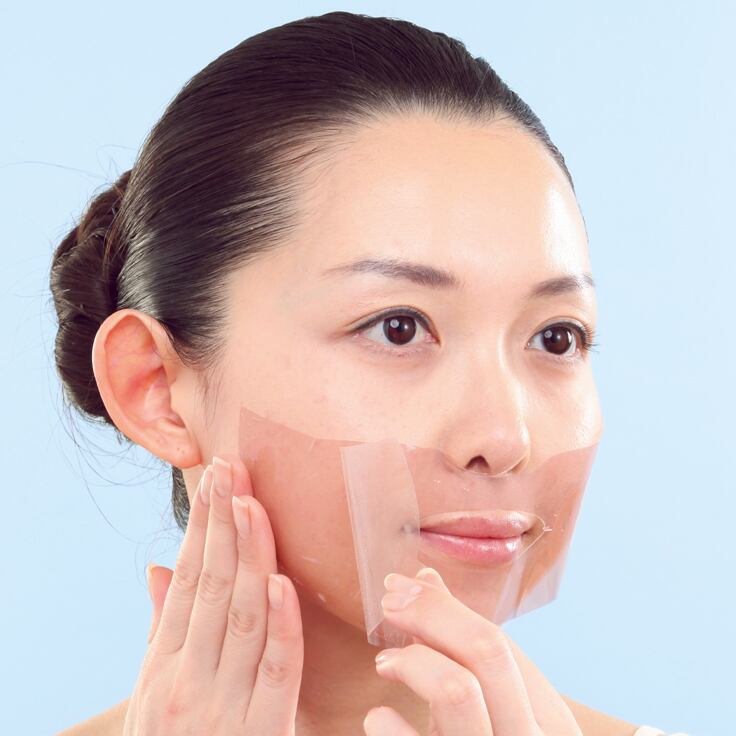 2.上側の透明フィルムだけをはがして、肌に密着させます。