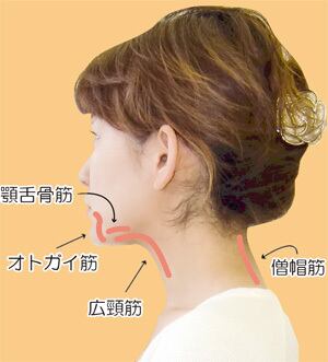 気になる二重あごをなくす効果がある顎舌骨筋だけでなく、オトガイ筋と僧帽筋を鍛える運動が同時にできますので