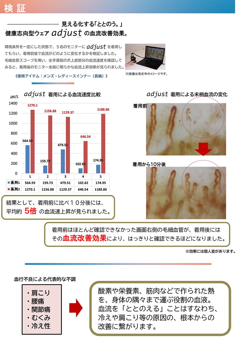 血流改善により末梢神経まで血液が巡り、疲労回復や冷え性にも効果があると実証されました。