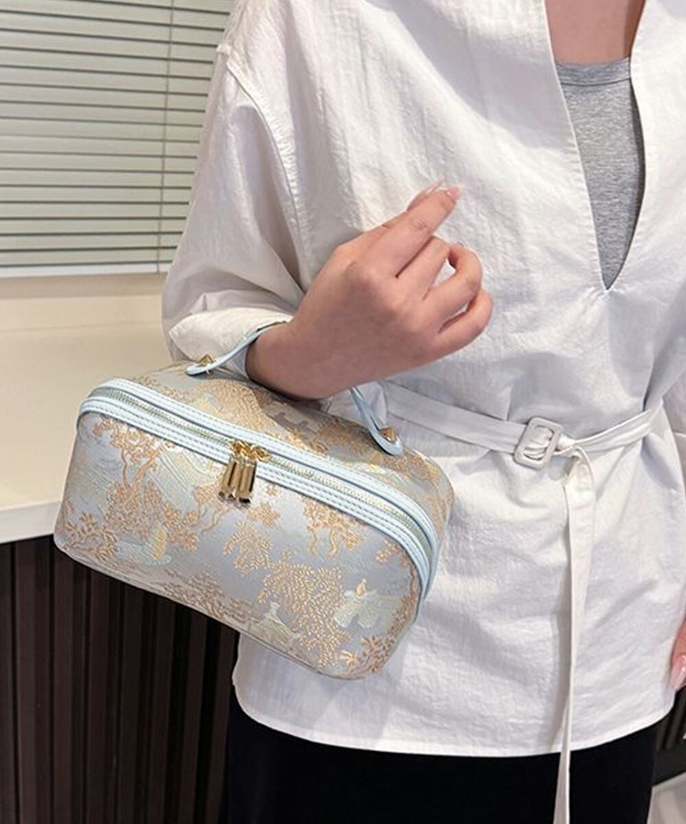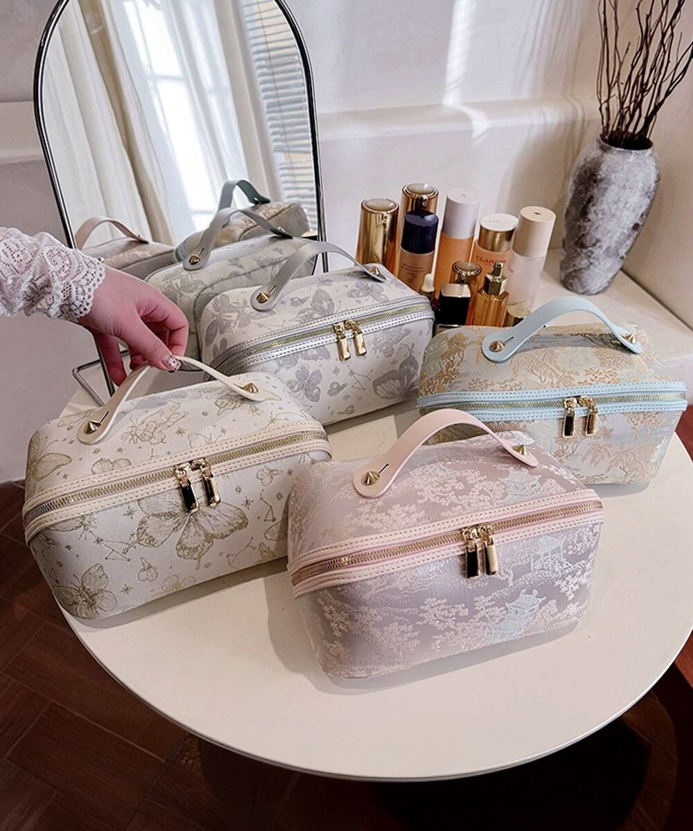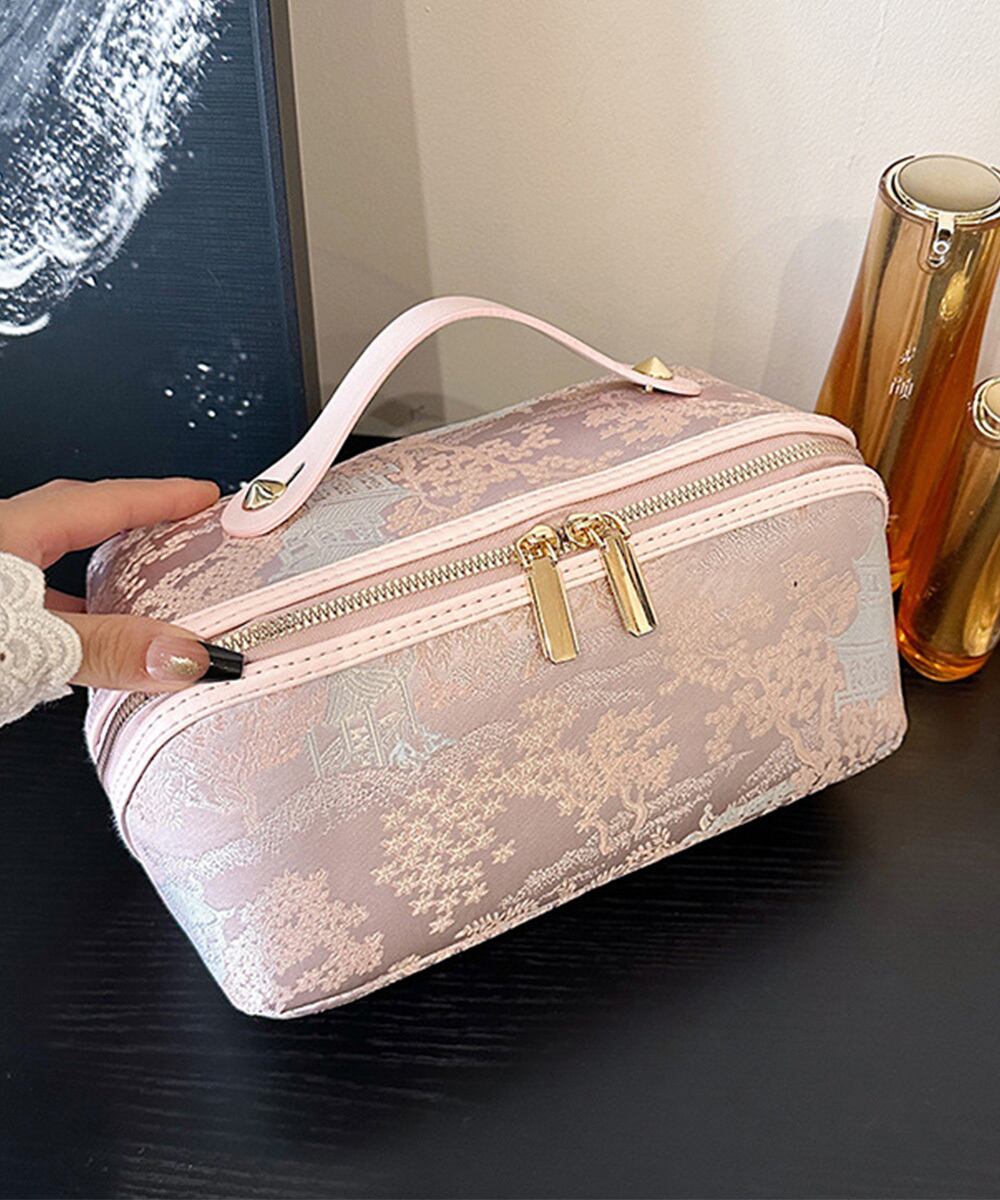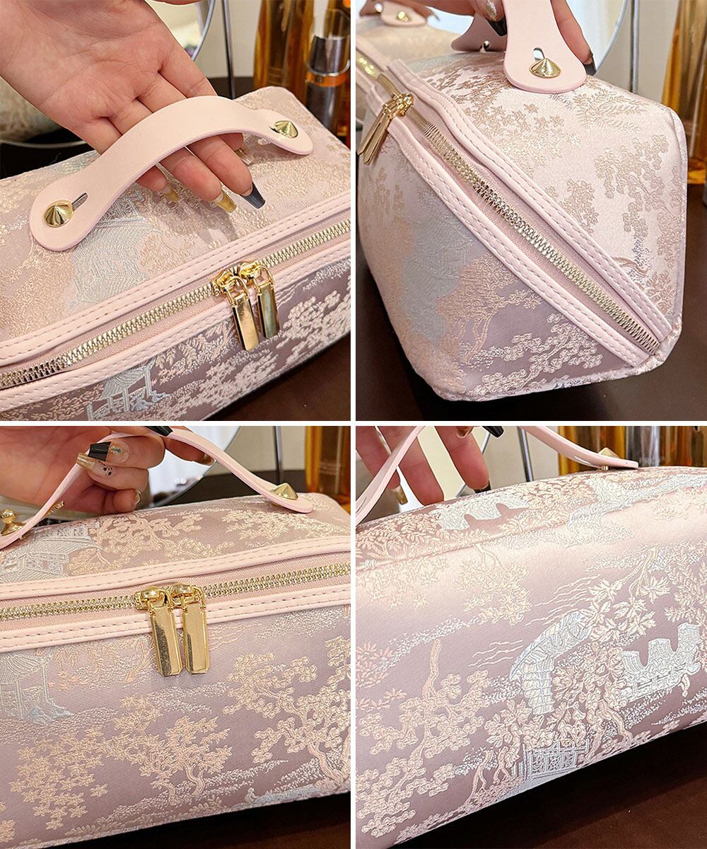 古風化粧ポーチ きれいめ大人可愛いバニティポーチ おしゃれ旅行コスメポーチ 持ち運び化粧品収納 大容量トラベルポーチ自立