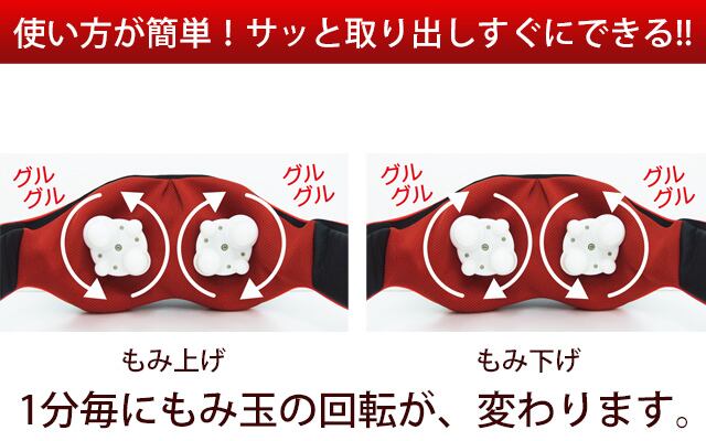 もみ玉が回転して首筋、背中、腰などのコリをほぐしてくれます。