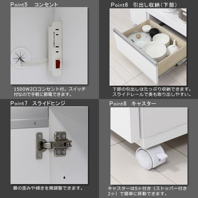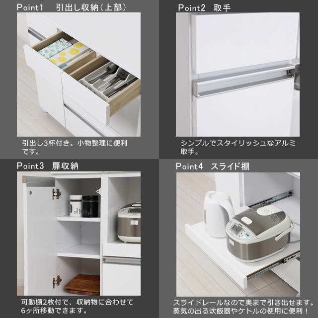 ◆スライド棚付きで、蒸気の出る炊飯器やケトルの使用に便利です。