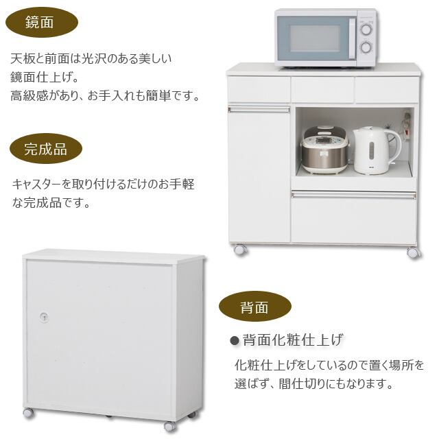 ◆天板と前面は光沢のある美しい鏡面仕上げ。高級感があり、お手入れも簡単です。