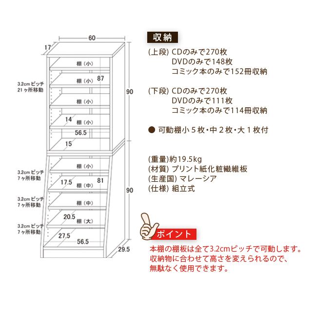 (上段)CDのみで270枚、DVDのみで148枚、コミック本のみで152冊収納
