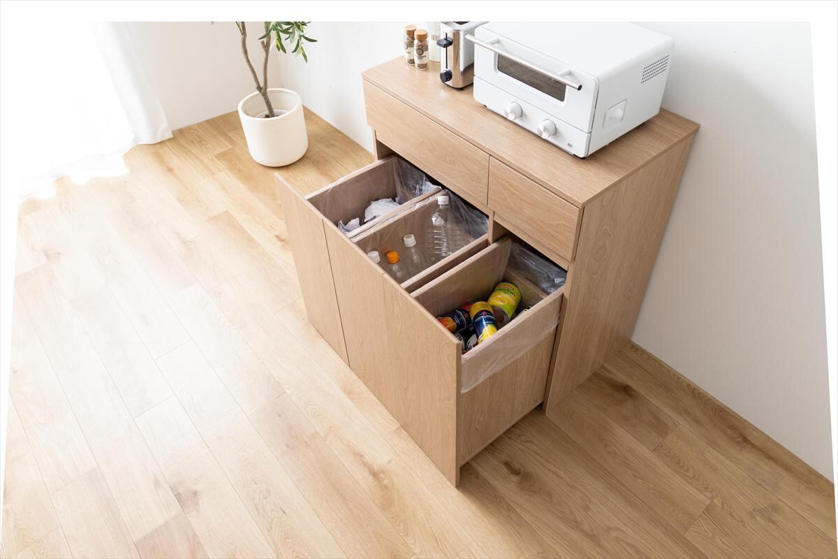 【耐荷重】天板:約15kg 、引き出し(各):約8kg、ゴミ箱底板(各):約8kg