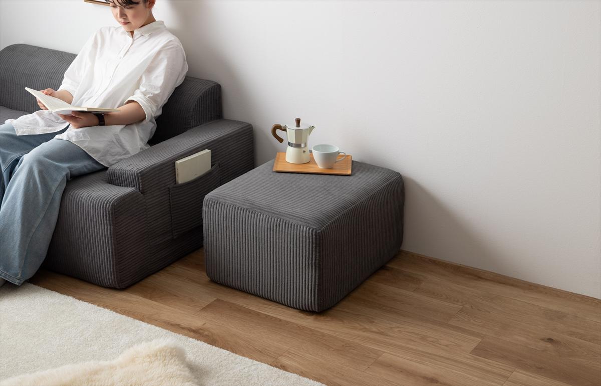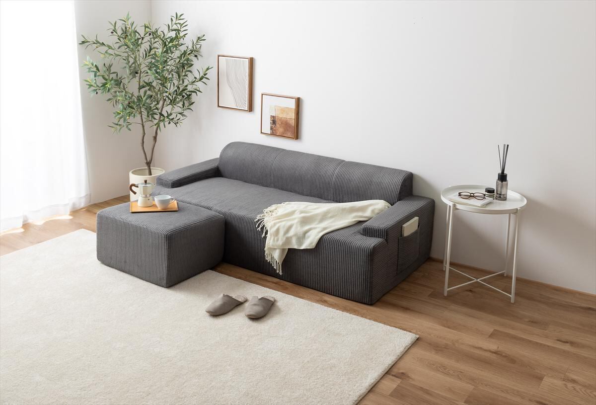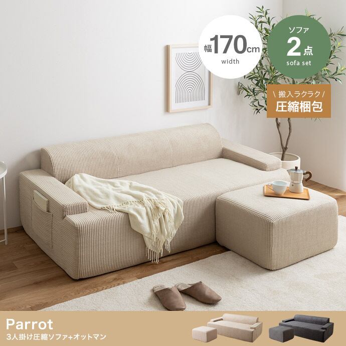 小さく届いて広々使える、快適圧縮シリーズの3人掛けソファ+オットマンセット