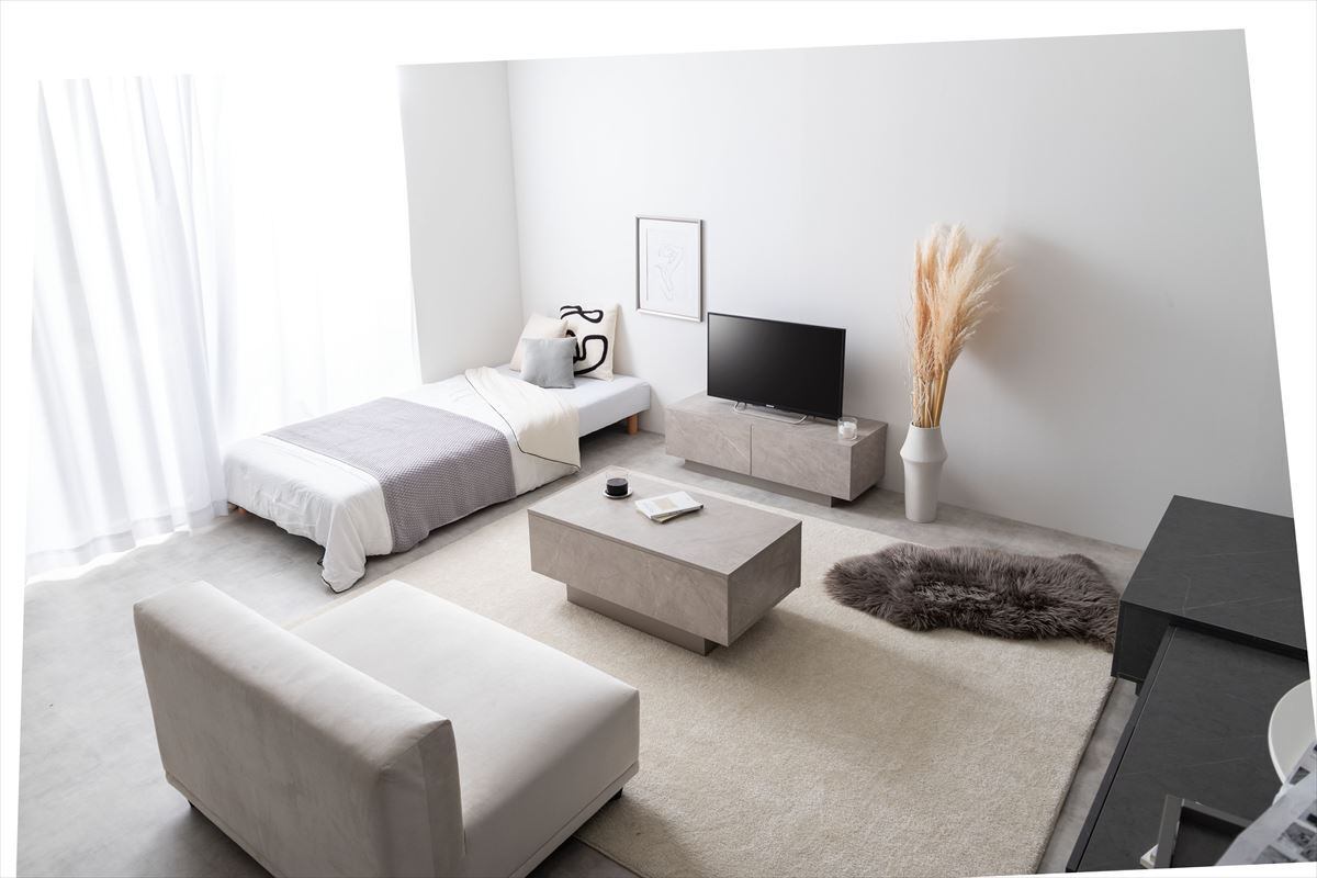 ストーン柄のニュアンスが上質な空間を作る『Sincere(シンシア)』引き出し付きセンターテーブル