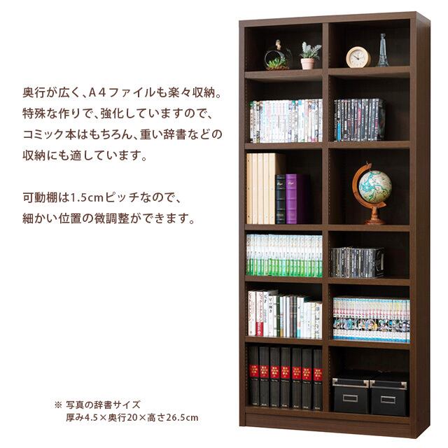 ◆特殊な作りで棚を強化しているので、コミック本はもちろん、重い辞書などの収納にも適しています。