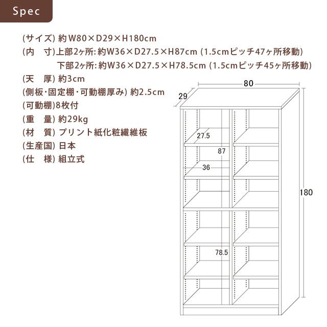 【商品サイズ】約 横80×奥行29×高さ180cm