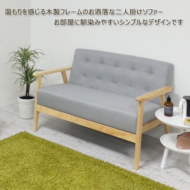 温もりを感じる木製フレームのオシャレな二人掛けソファです!