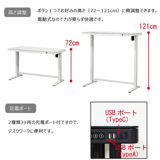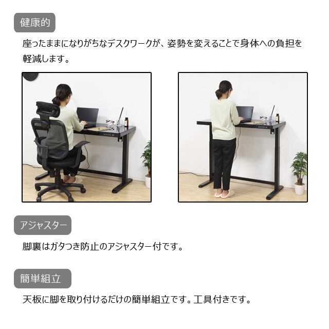 電動昇降デスク メモリー機能付(ホワイト)(ブラック