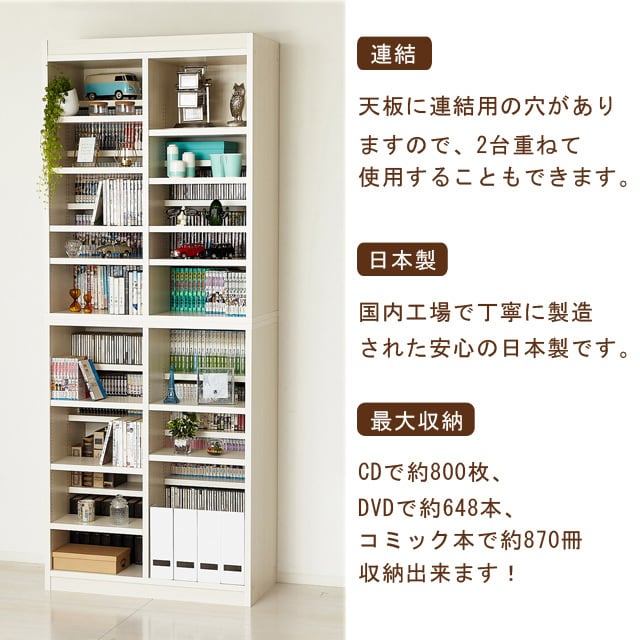 ◆最大でCD約800枚、DVD約648本、コミック本約870冊収納できます。