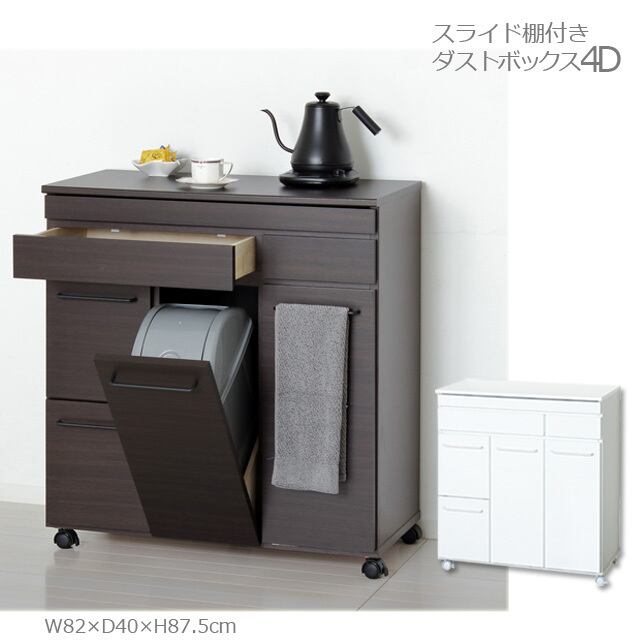 スライド棚付きダストボックス4D (ホワイト) (ブラウン)