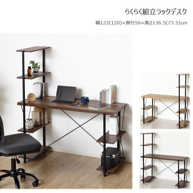 らくらく組立 ラックデスク (ナチュラル) (ダークブラウン
