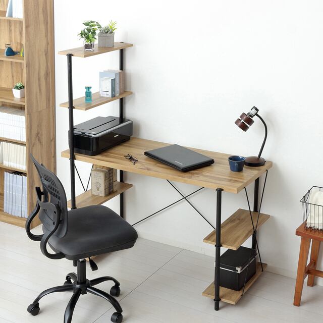ドライバー不要でらくらく組立!ラック付きデスクです。