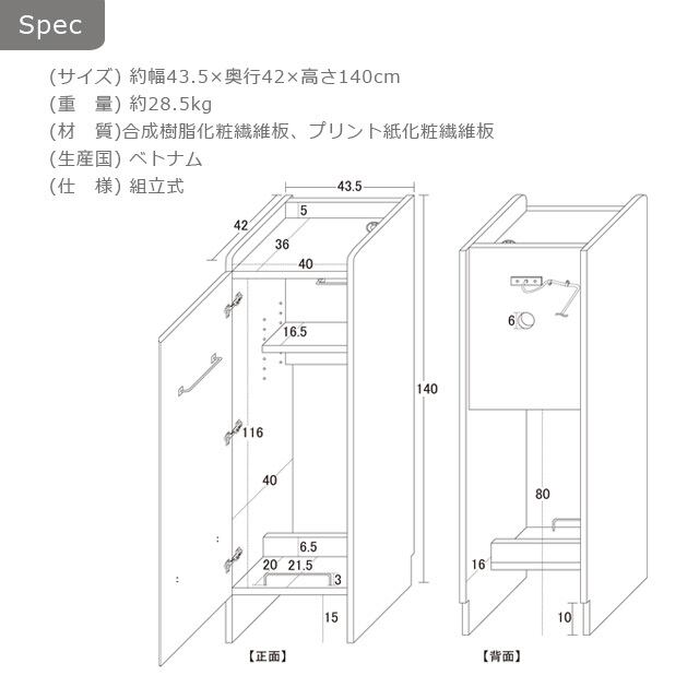 【商品サイズ】約 幅43.5×奥行42×高さ140cm