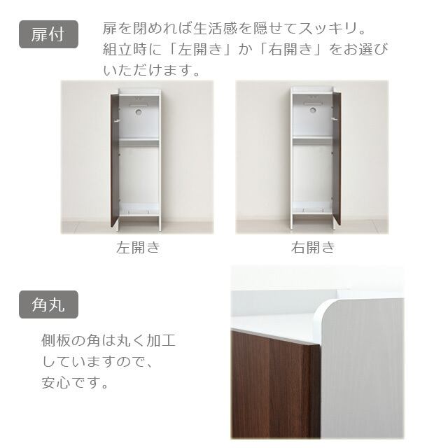 ◆扉を閉めれば生活感を隠せてスッキリ。組立時に「左開き」か「右開き」をお選びいただけます。