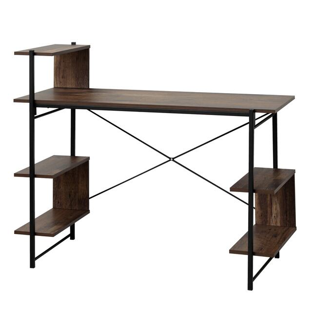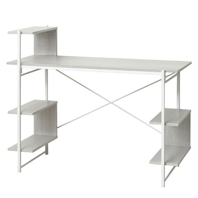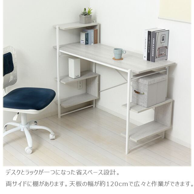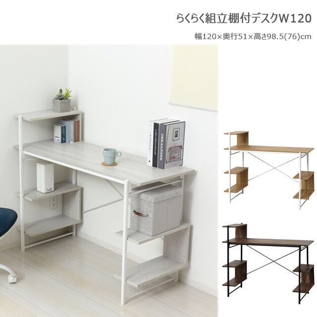 らくらく組立 棚付きデスクW120 (ホワイト) (ナチュラル) (ダークブラウン)