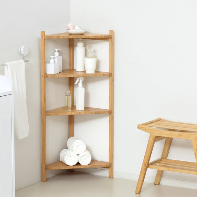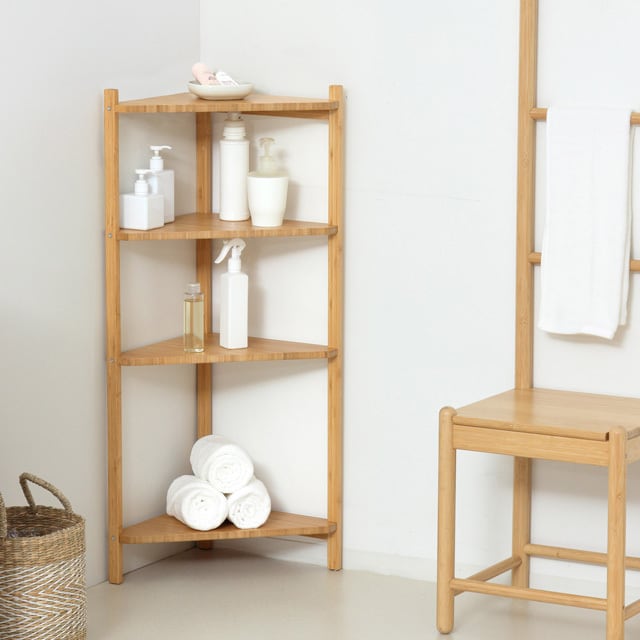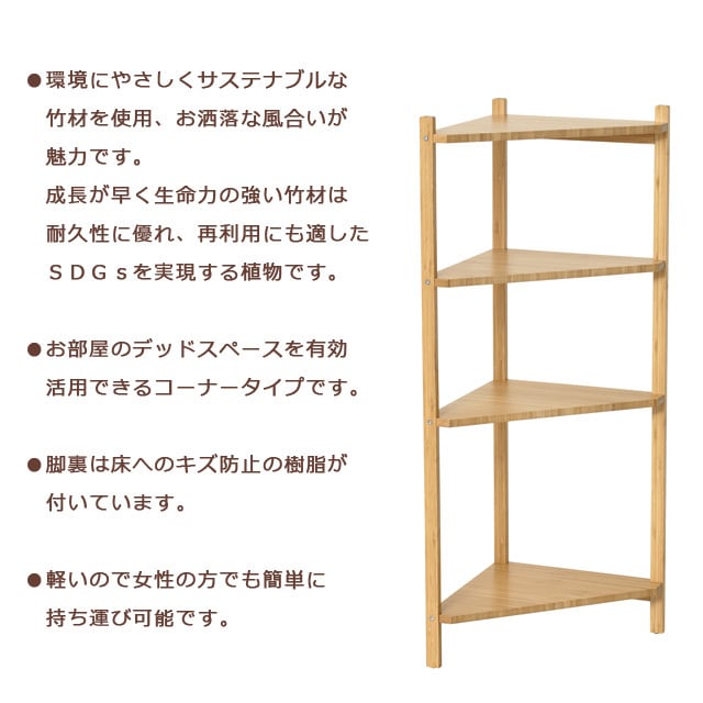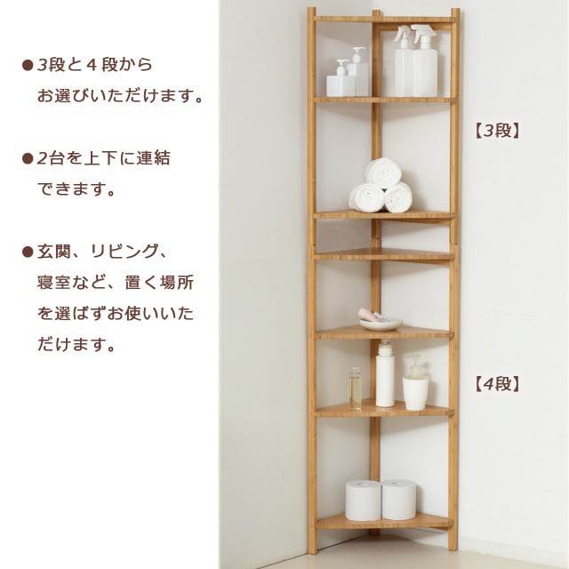 お部屋に馴染むナチュラル色のコーナーラックです。