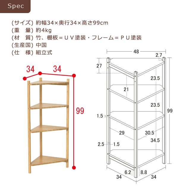 【商品サイズ】約 幅34×奥行34×高さ99cm