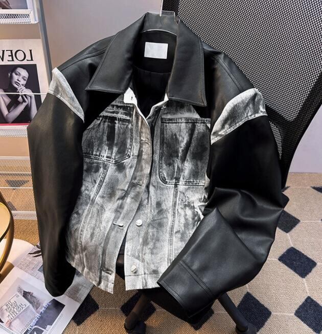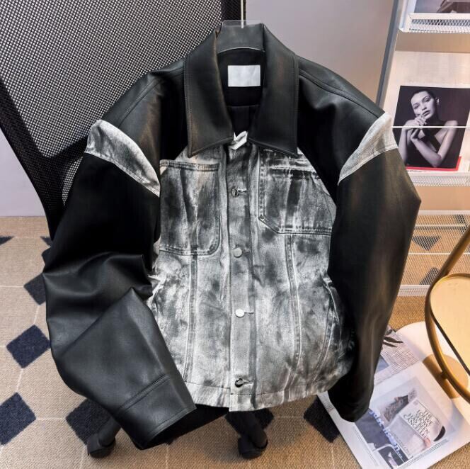 トップス アメリカン風 アウター ジャケット PU 切替 古着風 メンズ