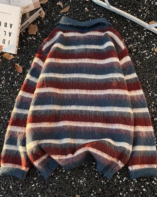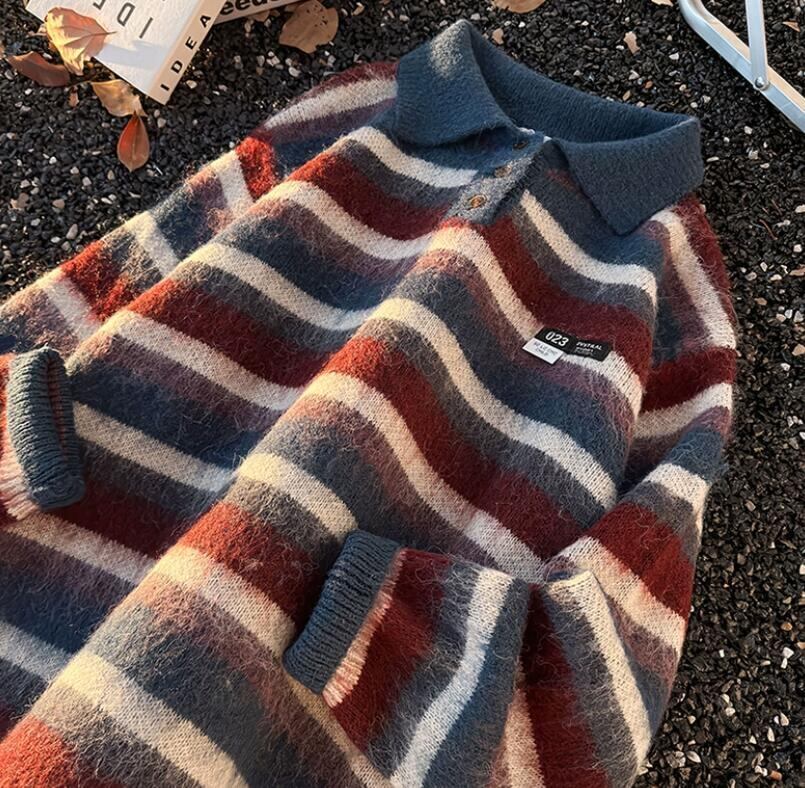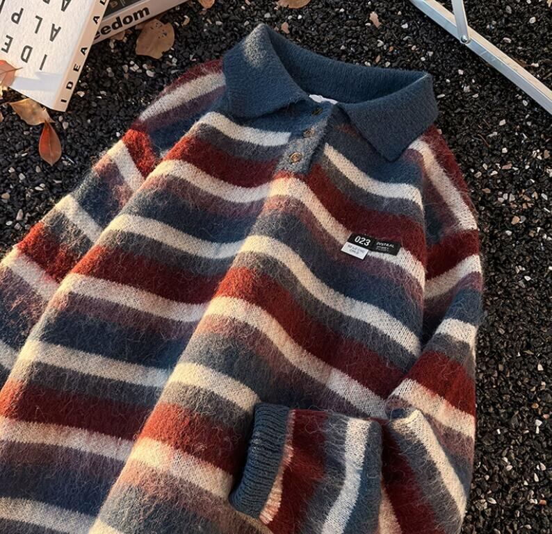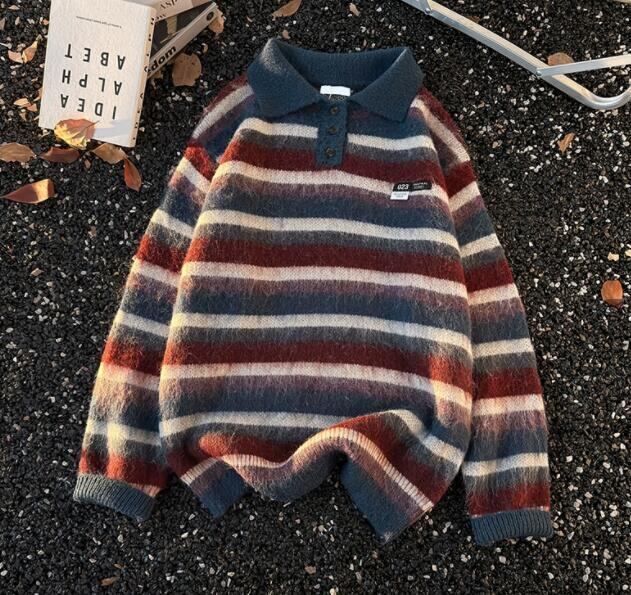 おすすめ 秋冬トップス メンズ ニット セーター ボーダー ポロ襟