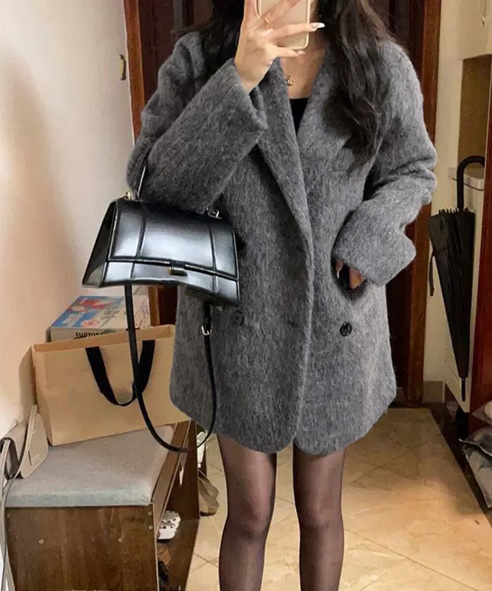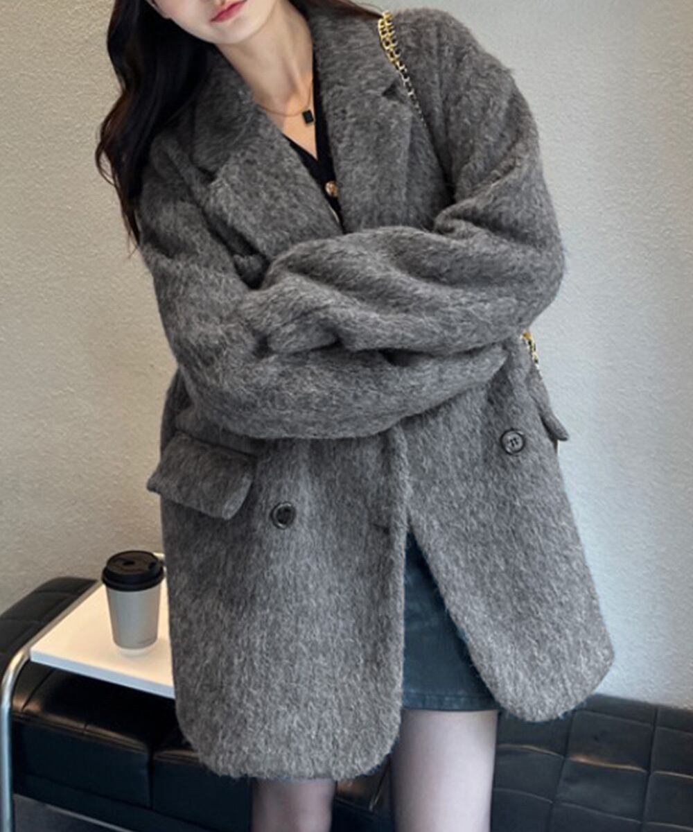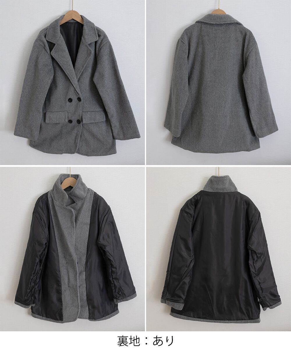 ダブルブレストジャケット 大人カジュアル テーラードコート ゆったりジャケット 秋冬アウター厚手 あったかアウター 上品
