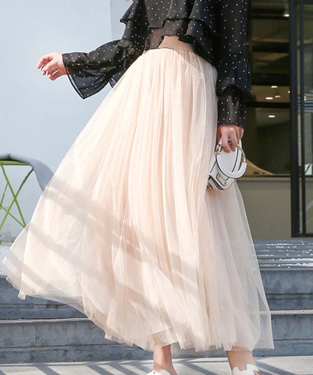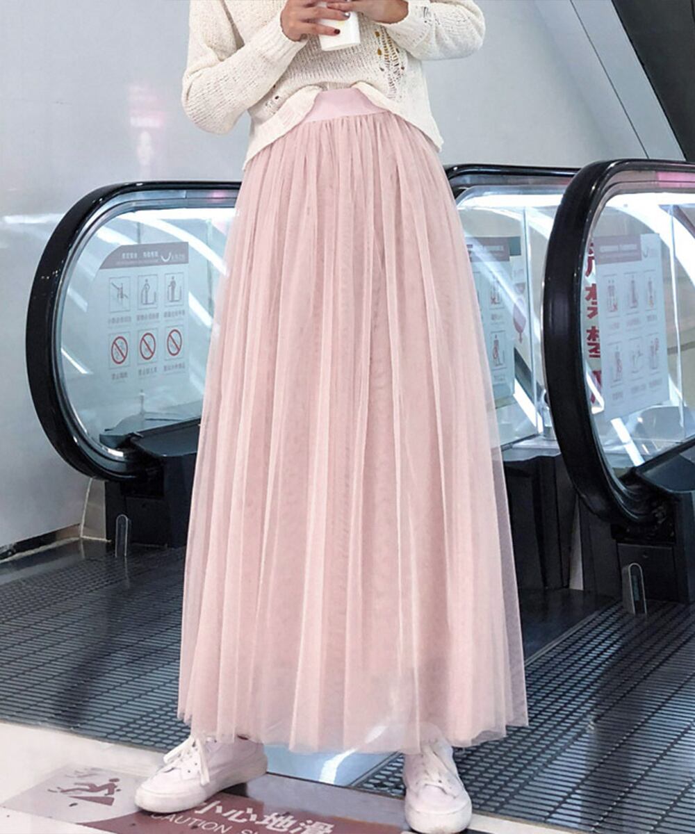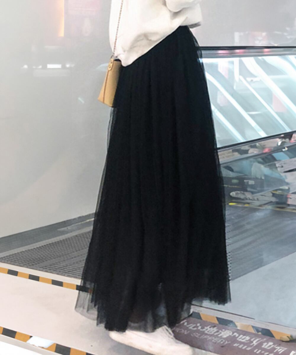 日本倉庫即納】 チュールスカート ロング