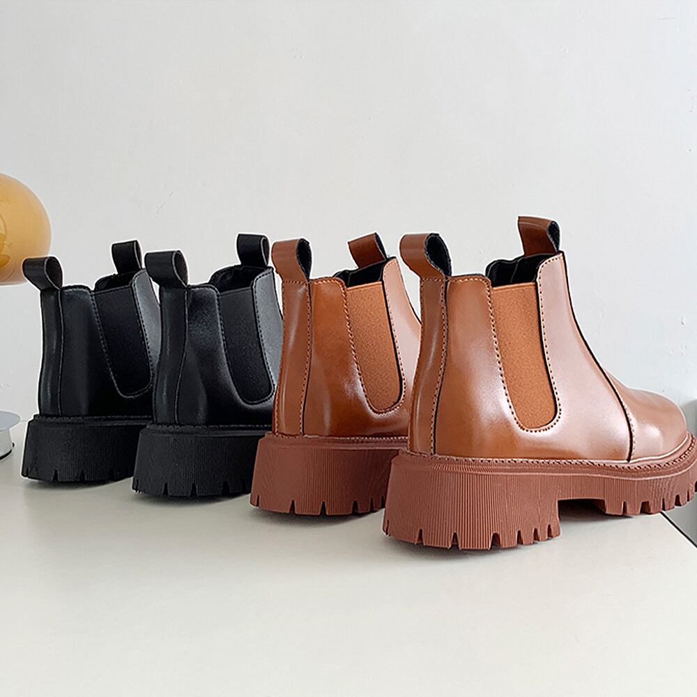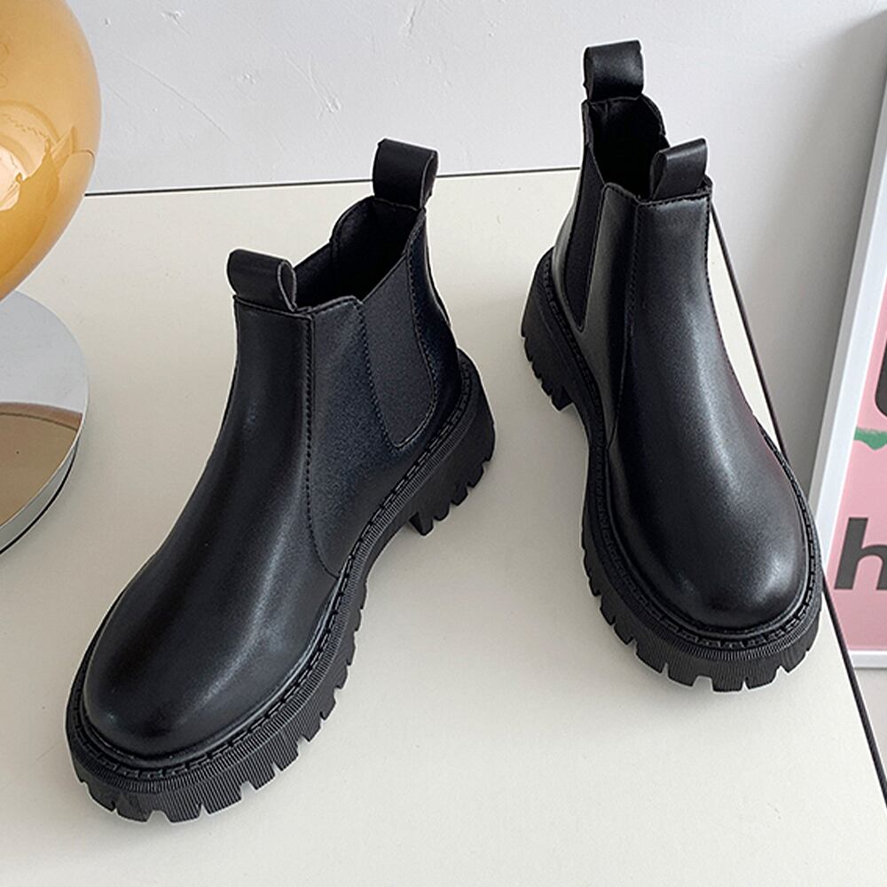 ブーツ ブーティー 合皮 歩きやすい ショート丈 秋冬 ワークブーツ 厚底ブーツ カジュアル ブラック 黒