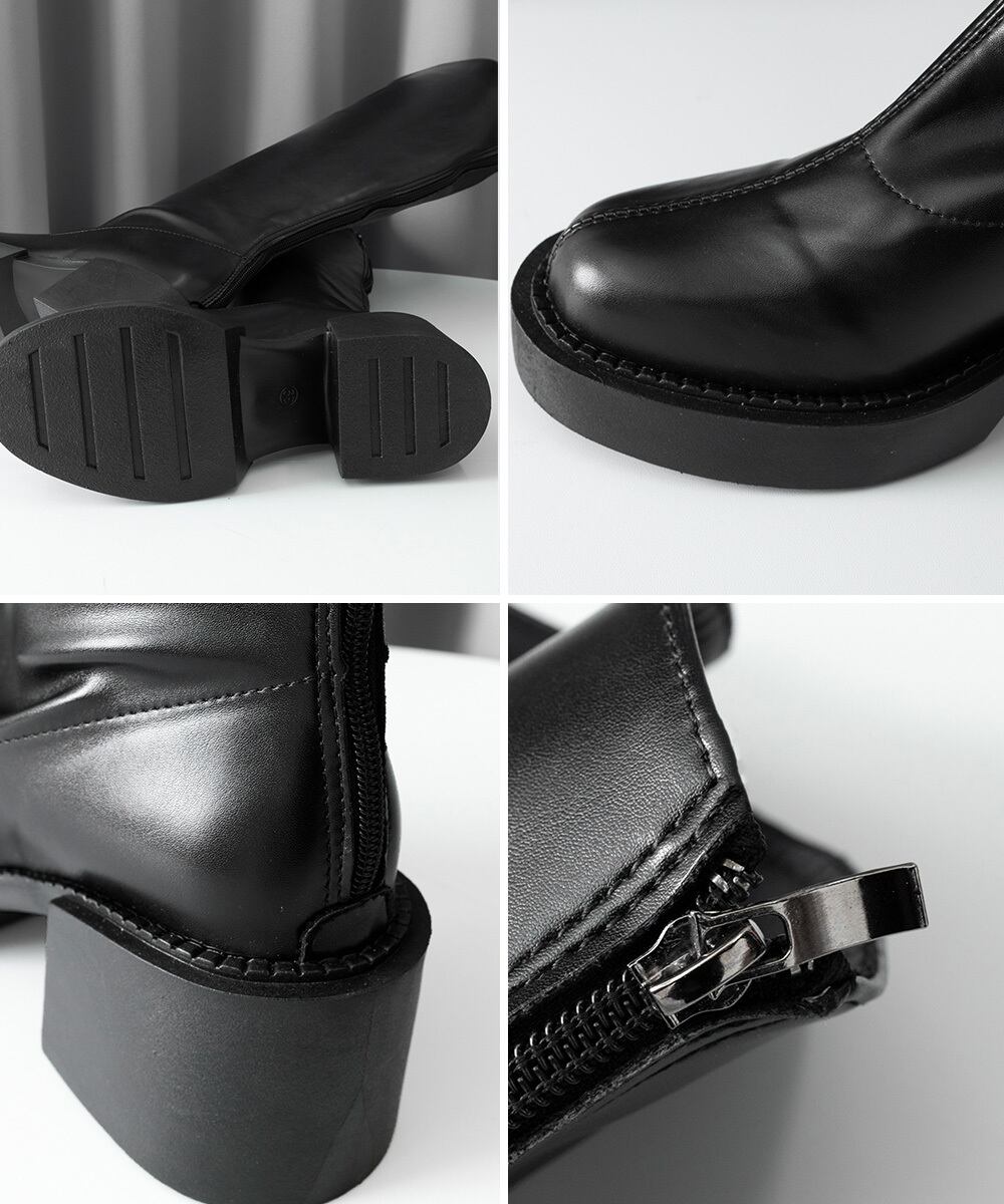 PUレザーブーツ黒 疲れない歩きやすい 美脚ブーツきれいめ