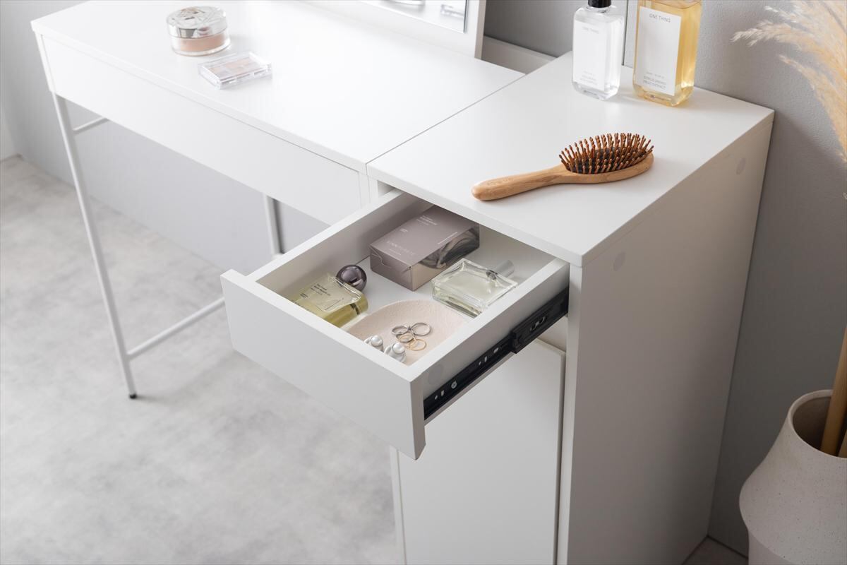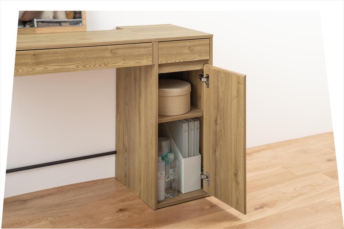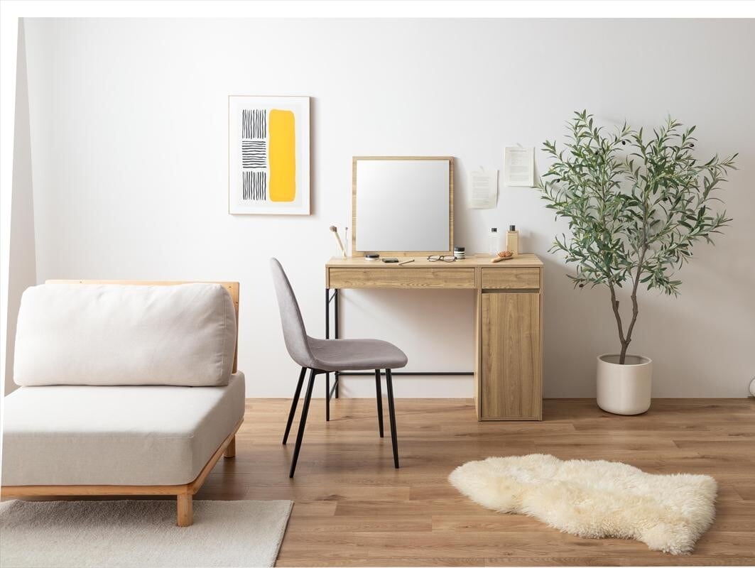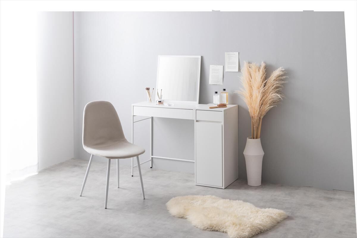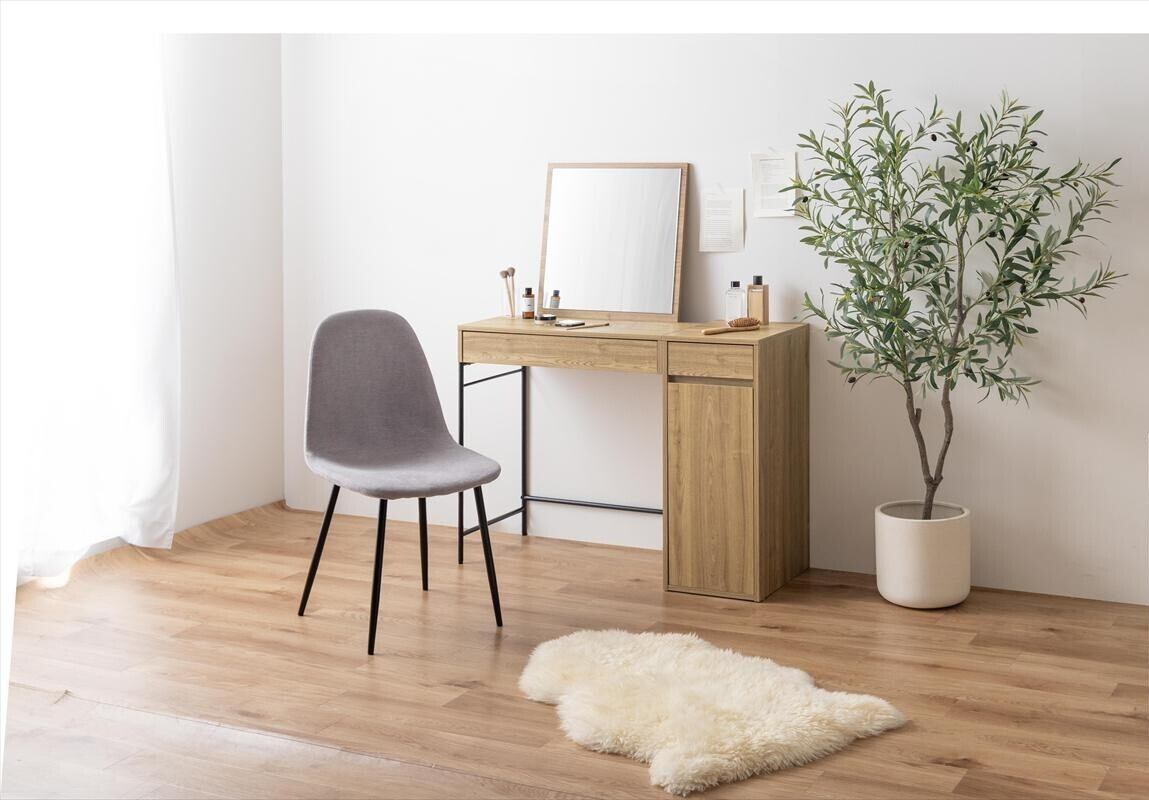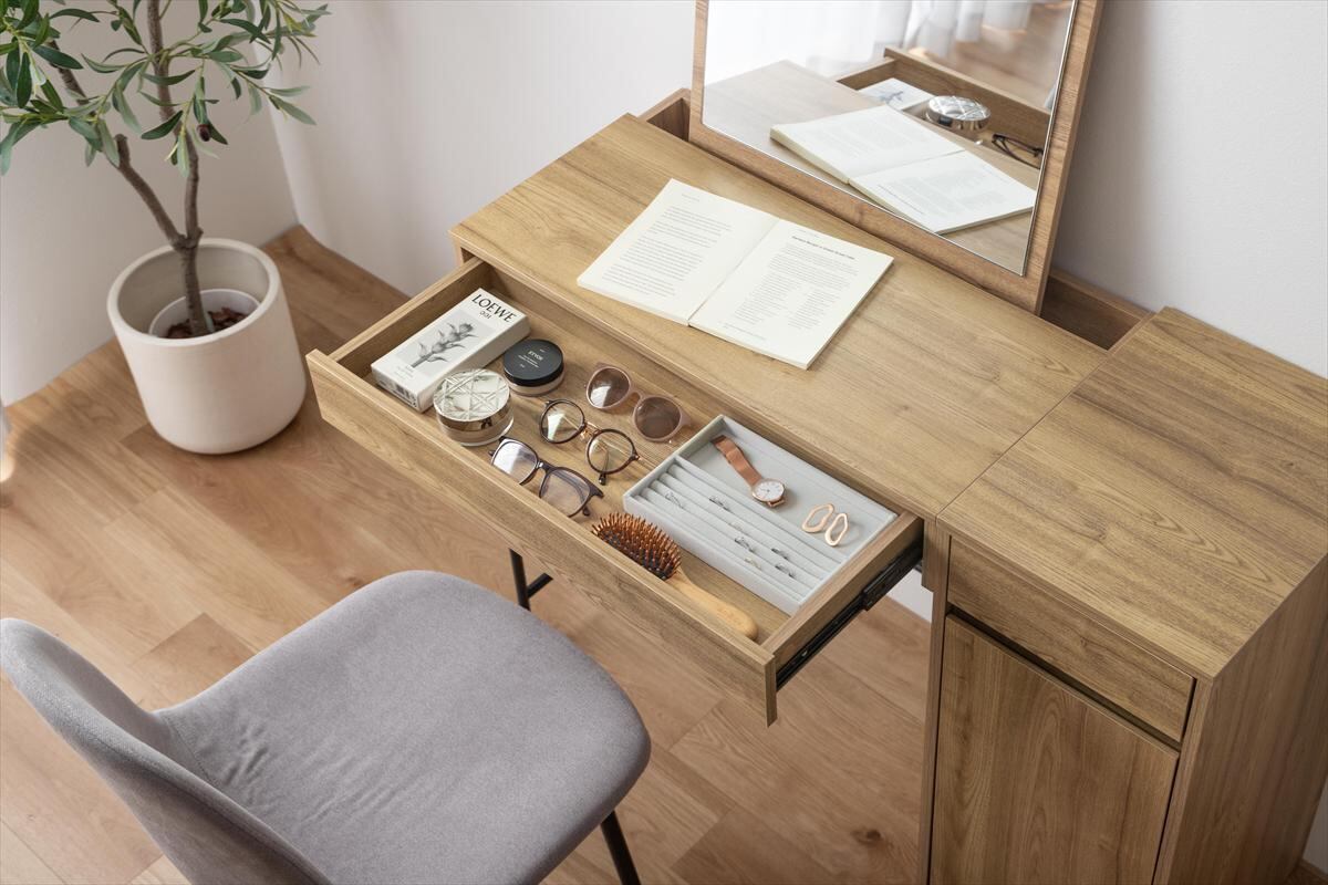 広々と使える天板とワイドミラー、たっぷり収納が魅力のドレッサー+チェアセット