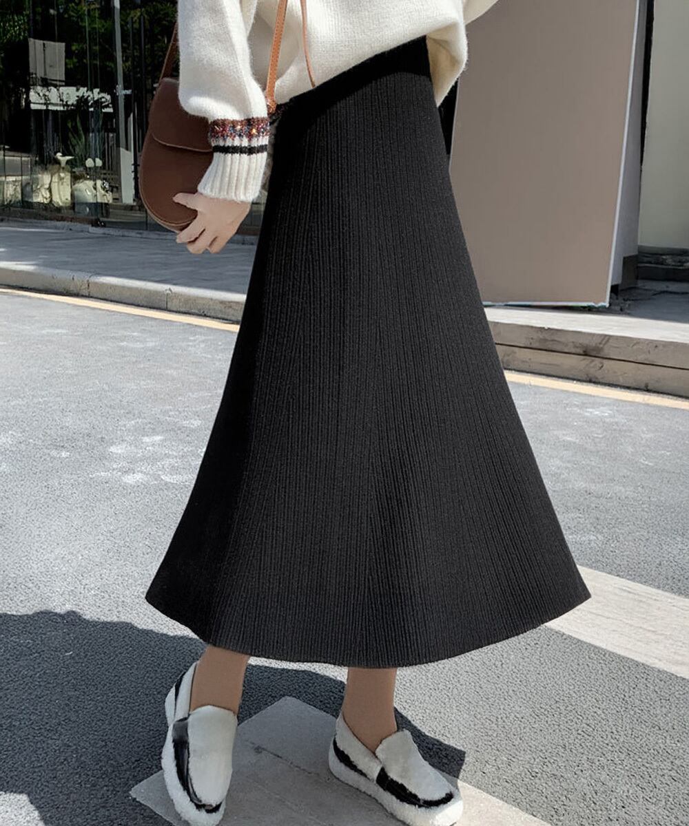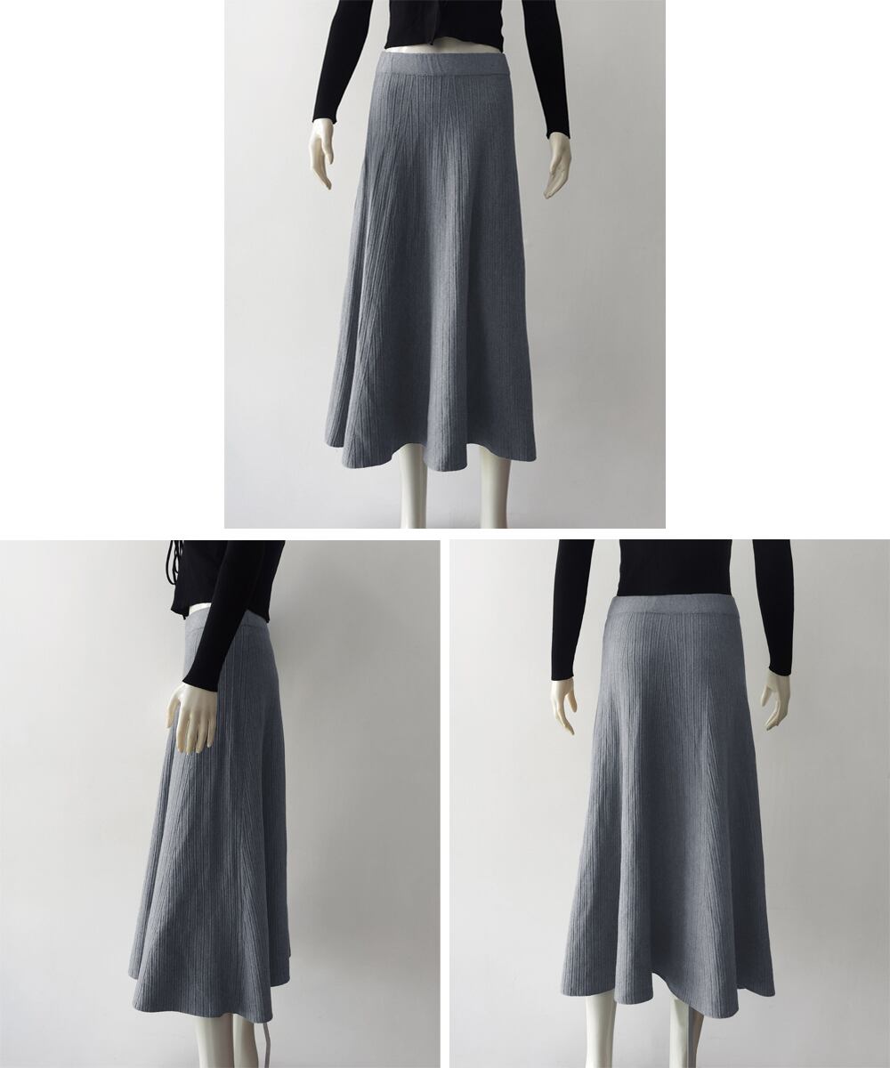 日本倉庫即納】 フレアニットスカート 着やせ 無地 秋冬