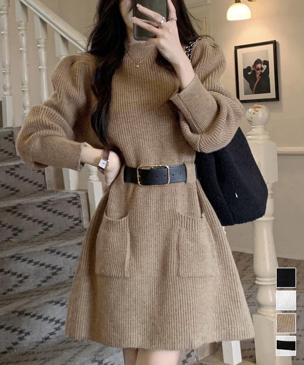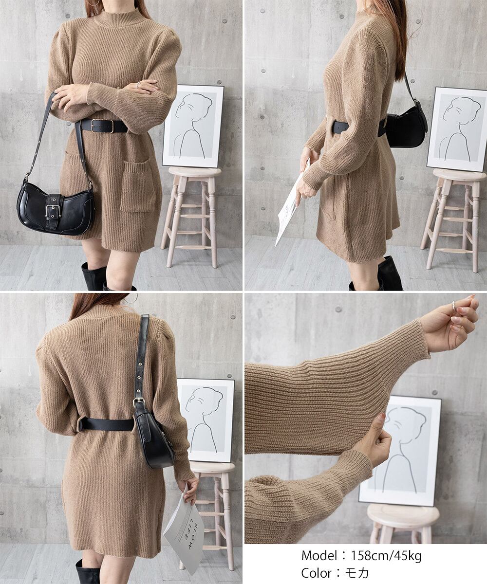 【日本倉庫即納】 ベルト付きニットワンピースウエストマーク