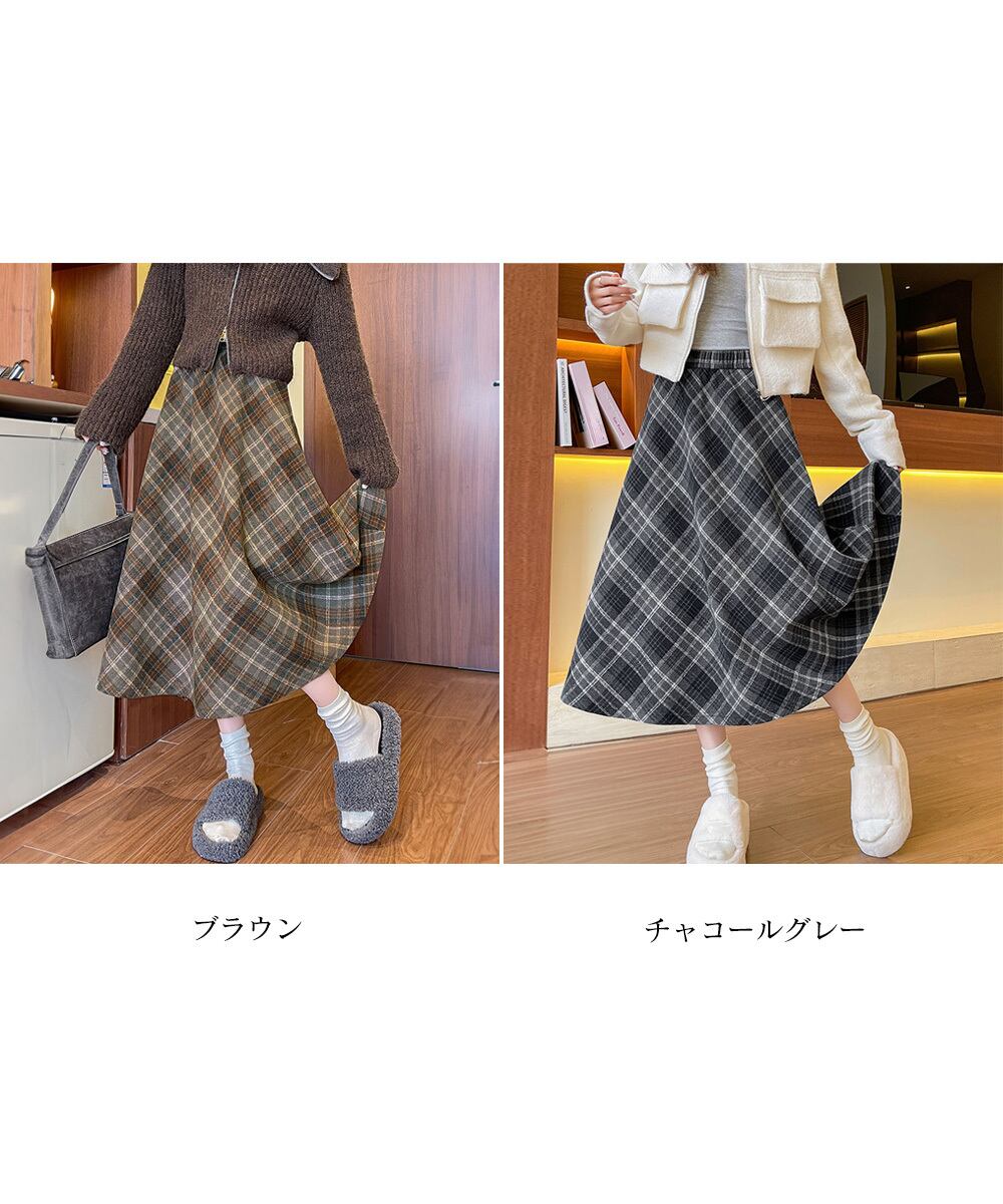 日本倉庫即納】 フレアスカート チェック柄 美脚 春秋冬