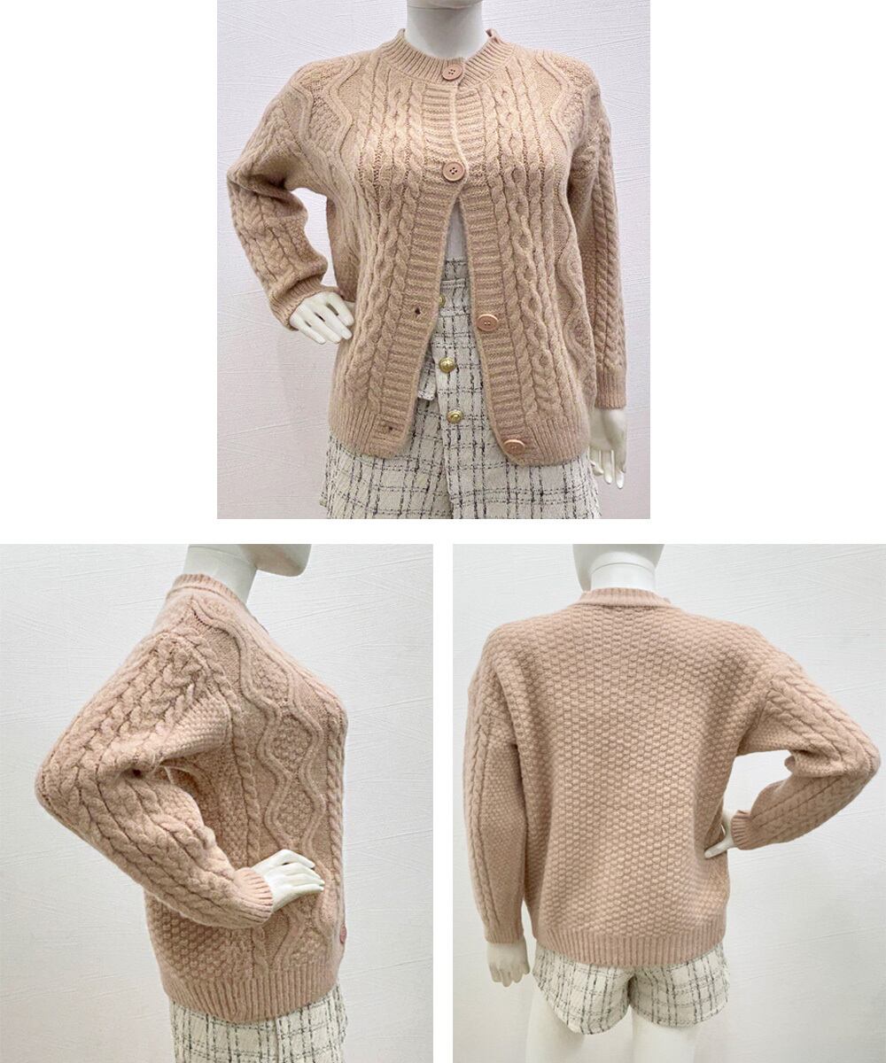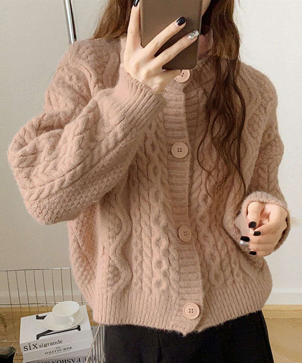 【日本倉庫即納】 暖かいケーブル編みニットカーディガン秋冬