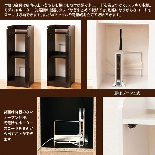 ◆扉内はモデムやルーター、光電話の機器、タップなどをまとめて収納できます。