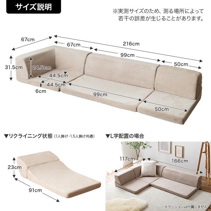コーナー:幅67cm×奥行67cm×高さ31.5cm(座面高:6cm)
