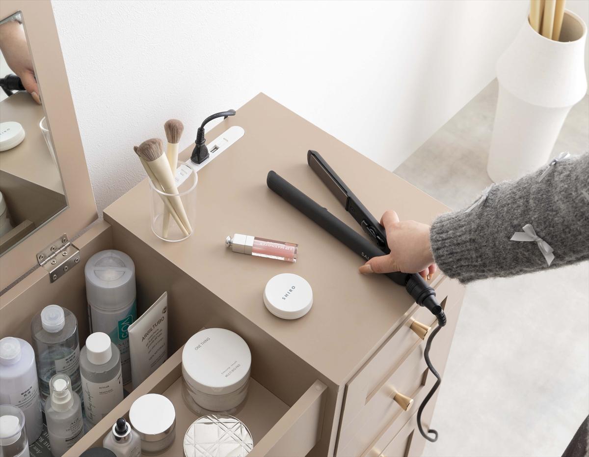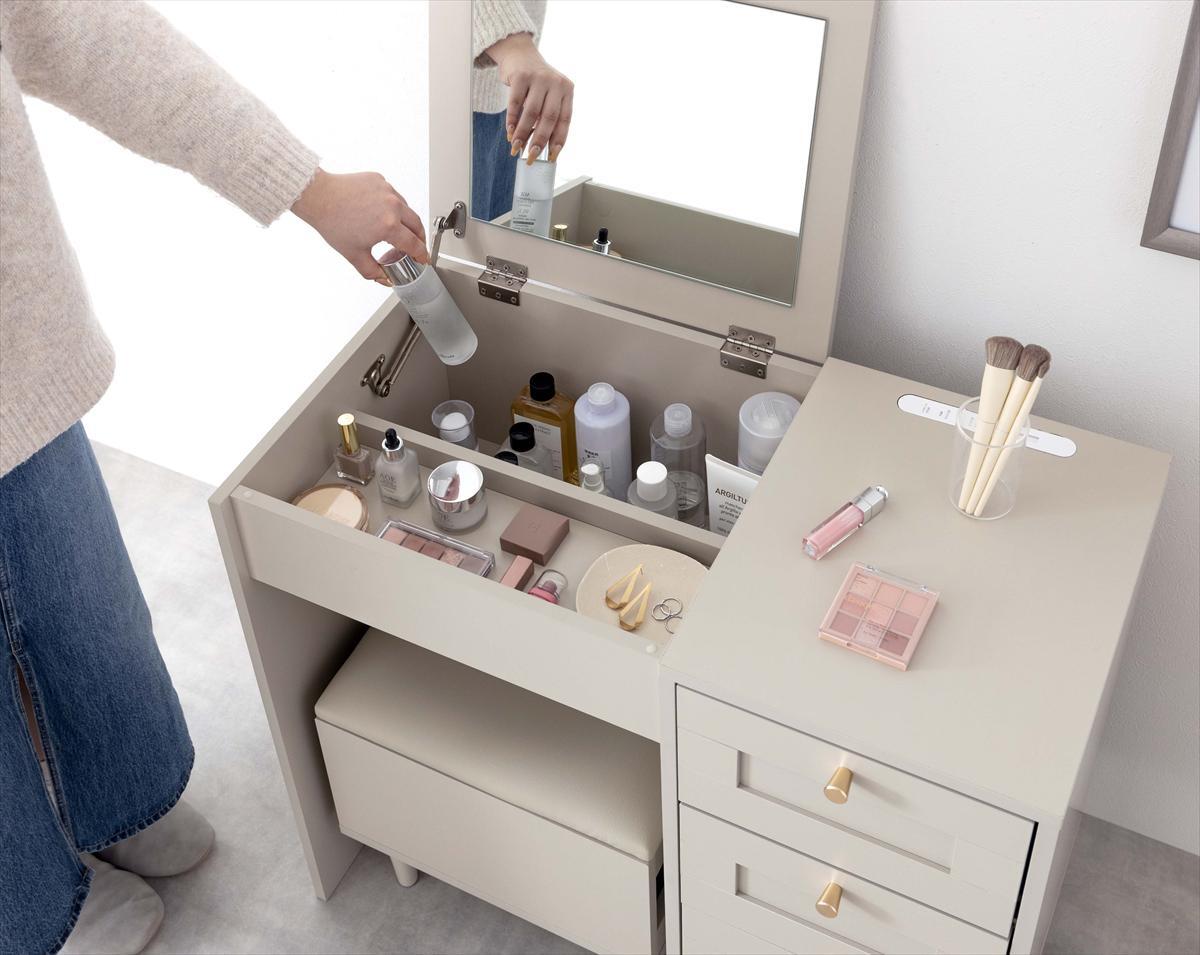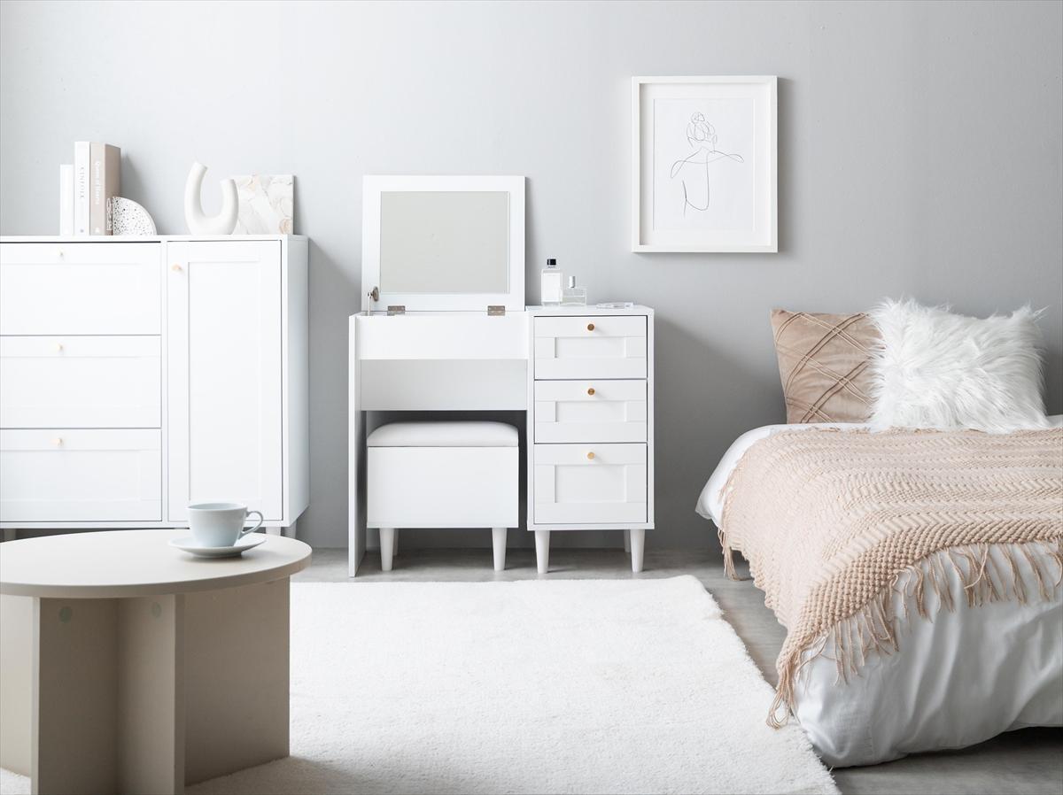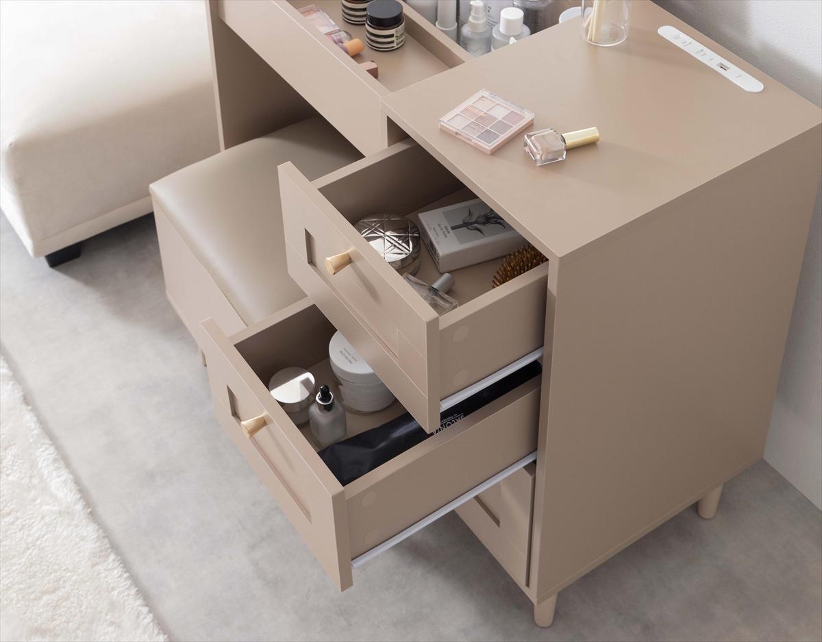 品のある框デザインと柔らかなニュアンスカラーが印象的な『Calan』シリーズのドレッサーデスク